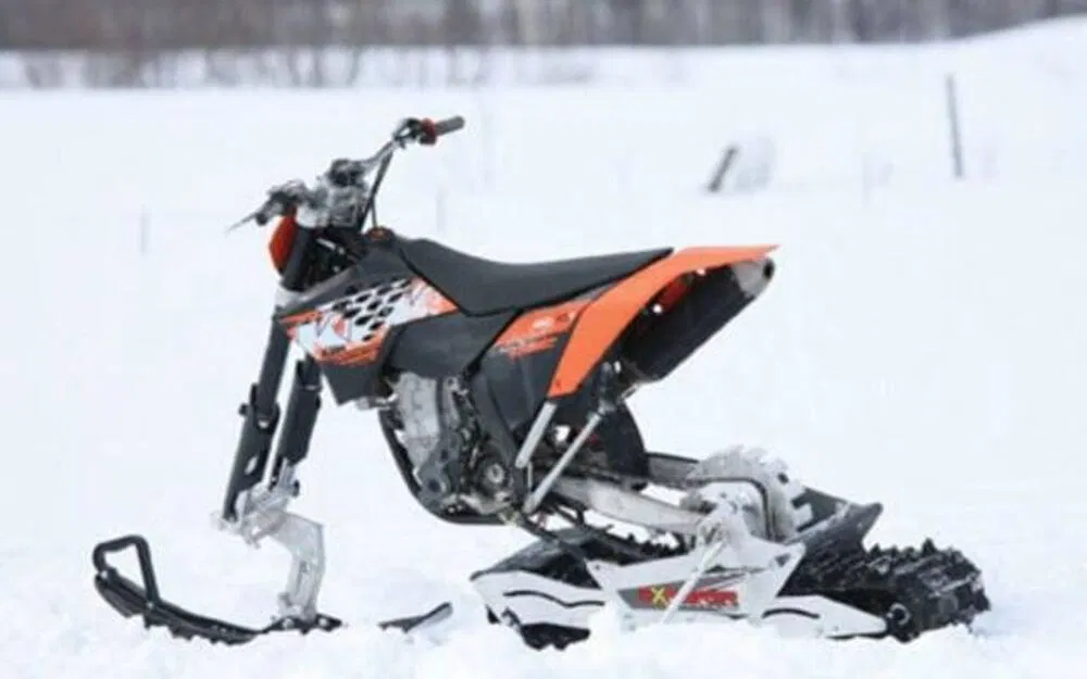 Stai cercando un modo unico per guidare la tua KTM (o qualsiasi altra marca di moto da cross, enduro o supermoto) anche sulla neve? Il produttore di motoslitte e sospensioni personalizzate AD Boivin (creatore della SnowHawk) ha lanciato la soluzione definitiva: il Kit di Conversione Explorer. Questo innovativo sistema trasforma rapidamente la tua moto in una vera e propria snowbike, aprendo una nuova dimensione di guida sulla neve.