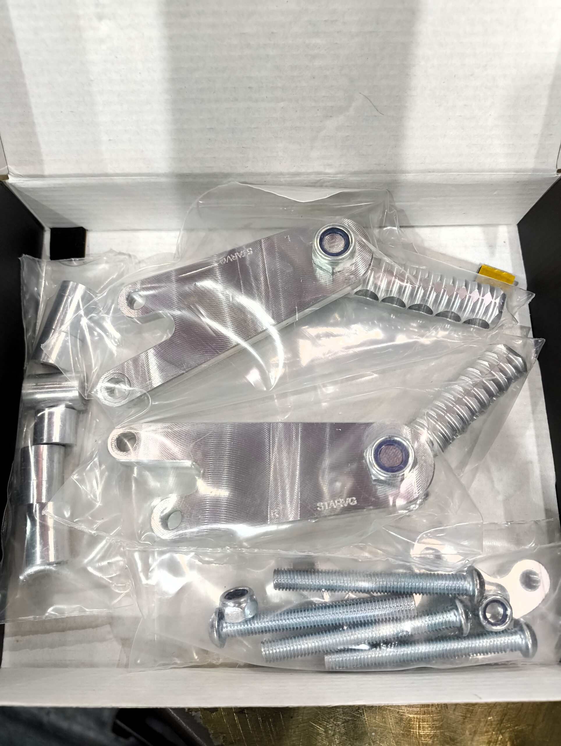 Kit picchetti passeggero (coppia) progettati per i modelli Stark Varg MX ed EX Realizzato con un solido blocco di alluminio 7075-T6 lavorato a CNC. Specifiche: – Peso: 519 g (coppia) – Resistenza: 80 kg per ogni piolo – Tempo medio di assemblaggio: 4 min – Materiali: lega di alluminio 7075-T6, bulloni in acciaio di grado 10,9 con finitura zinco Elenco dei modelli compatibili: – Varg MX 2024+ – Varg EX 2024+